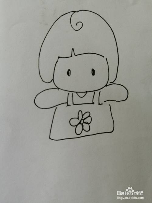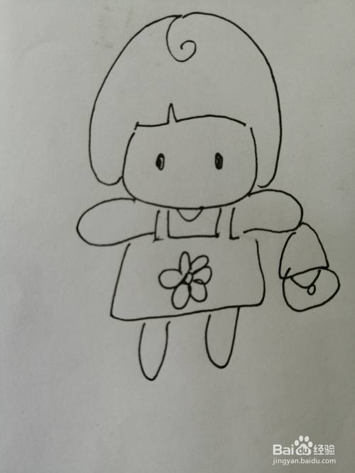 第六步,然后在可爱的小女孩的小手上画出一个小手提包,画法也比较简单。