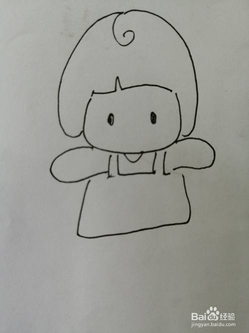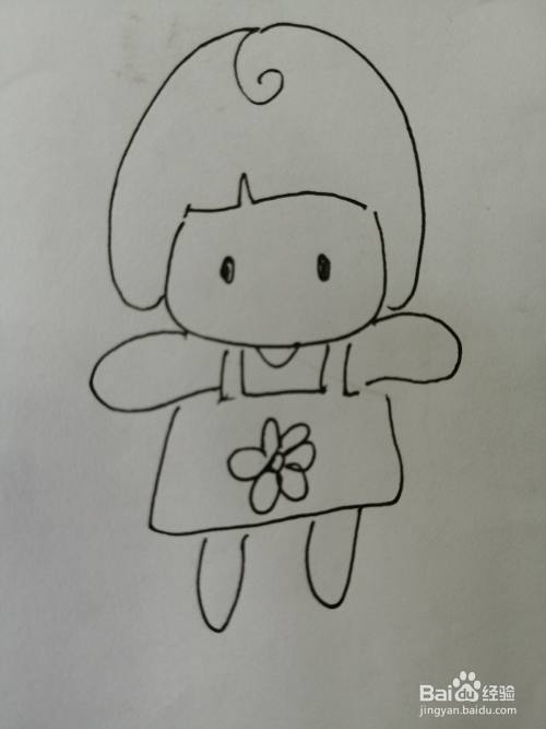 第三步,然后继续画出可爱的小女孩的身体,注意小女孩衣服的画法。