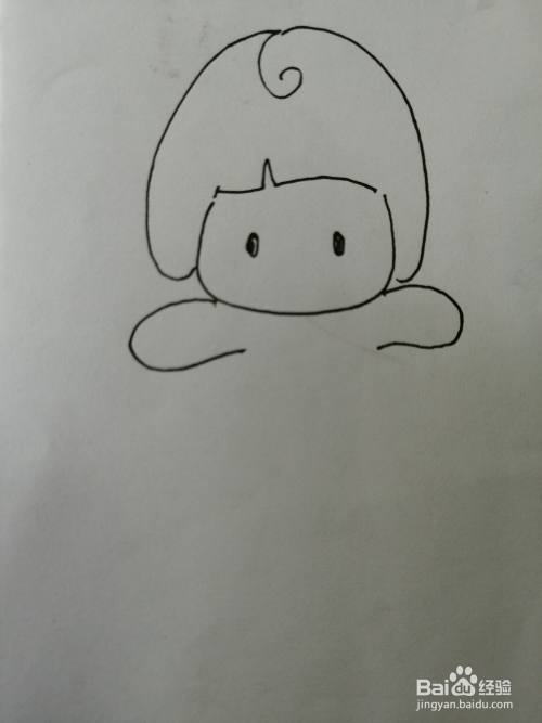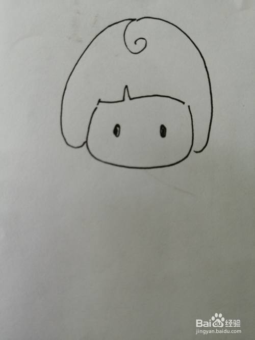 第二步,接着继续画出小女孩的两只黑色的眼睛,小女孩的眼睛很可爱。