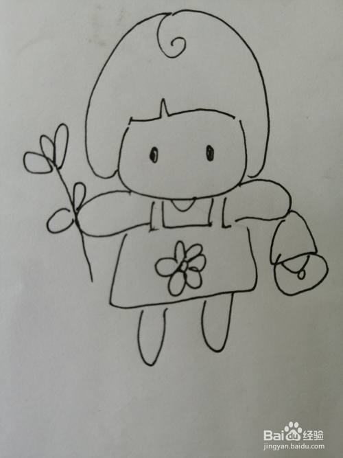 第七步,最后在可爱的小女孩的另外一只手上画出一朵漂亮的小花。可爱的小女孩就画好了。