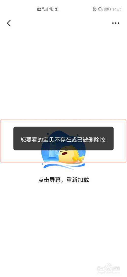 第五步再次进入评价商品链接,会提示您要看的宝贝不存在或已被删除啦!