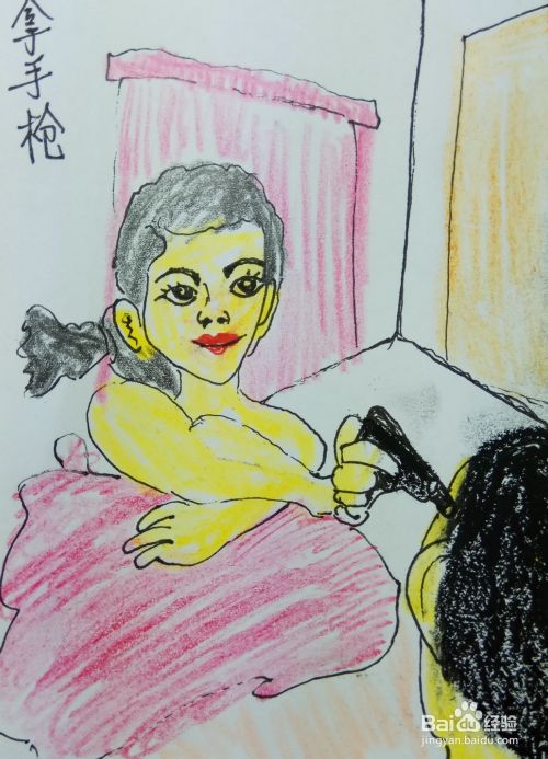 画出这个女人右边的胳膊和她手里拿着的一把枪的外形轮廓。