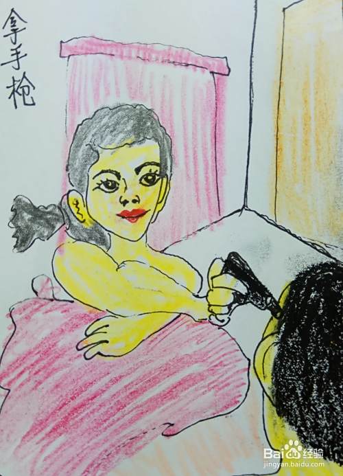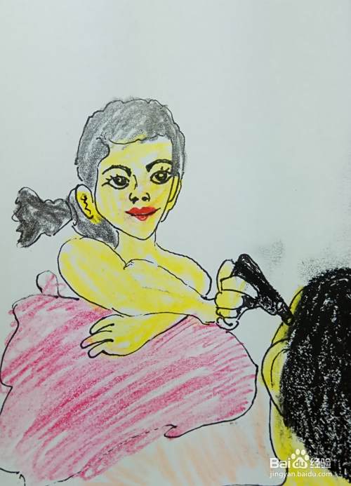 用水彩笔涂出她的皮肤色彩,然后再涂出她的头发色彩,画出一个人的头部轮廓,并涂出他的头发色彩,这是背面。