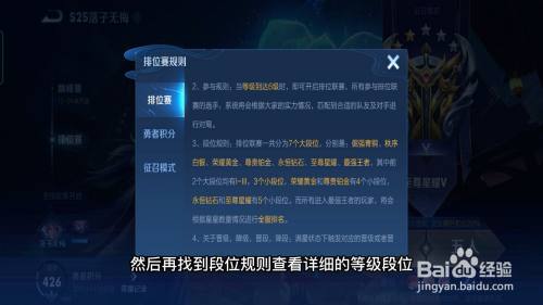 可以来到排位页面点击查看排位赛规则,然后再找到段位规则查看详细的等级段位。