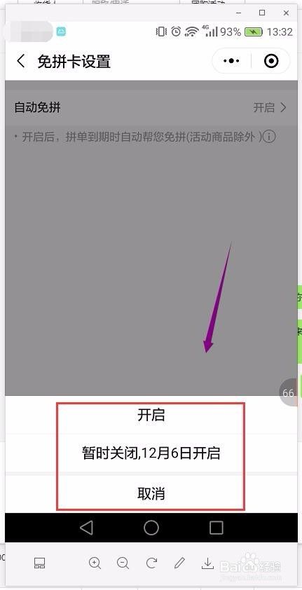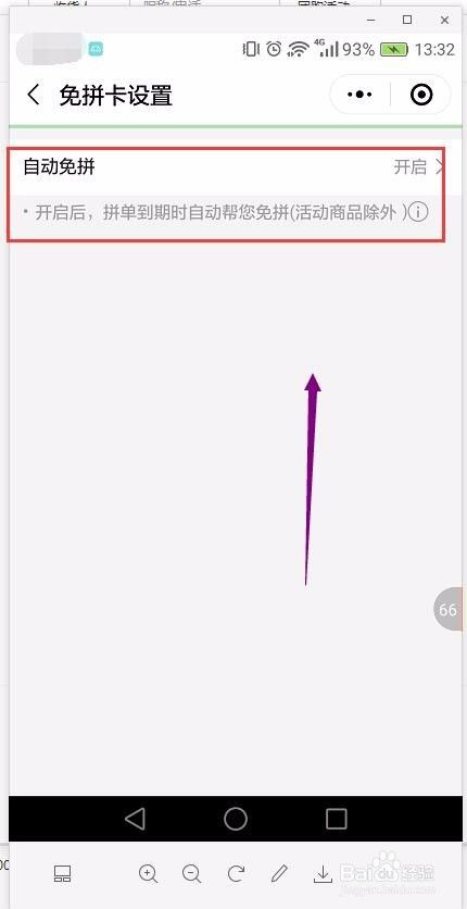 如下点击的是:免拼卡设置,打开如下窗口;按照提示再点击页面上的:自动免拼,点击它进入另一个页面去设置关闭与开启。