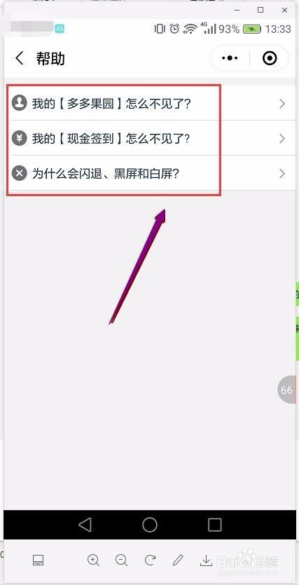 如下点击的是:其他活动功能问题(找不到果园、黑屏白屏),按照提示来到如下页面。再点击上方第一个选项,进入另一个页面去查看问题项。