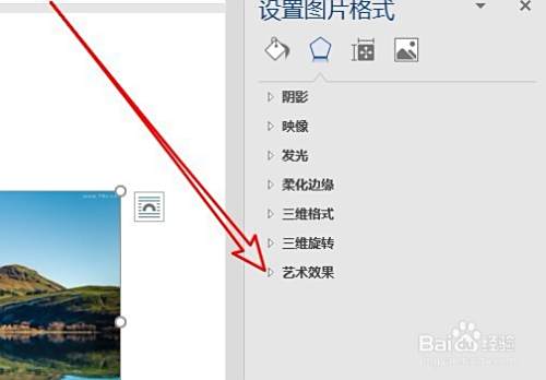 然后在打开的设置图片格式菜单中,我们点击艺术效果菜单项