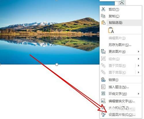 右键点击要编辑的图片,在弹出菜单中选择设置图片格式菜单项