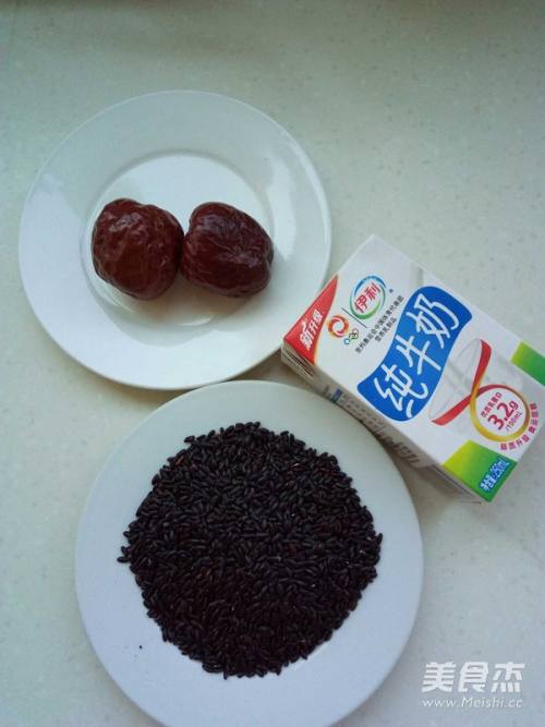 准备食材,黑米洗净,泡上12小时以上,用电饭锅加适量的水煮熟