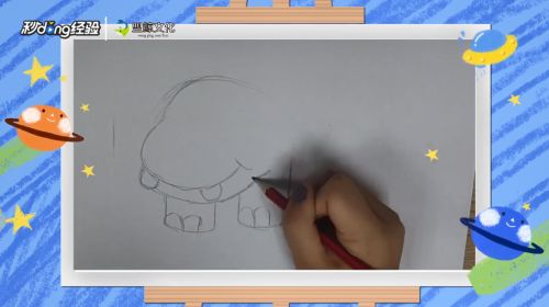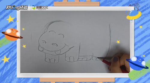 3现在在已经成型的图案上画出河马的身体和尾巴。