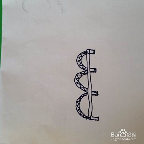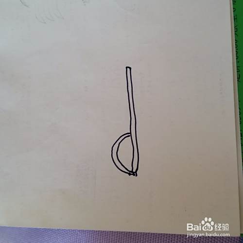 先画一个细长的长方形,然后在上面分三等分,先画一个半圆的环形