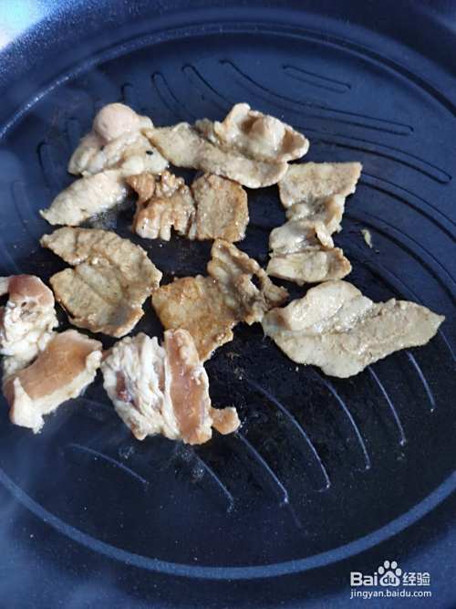 热锅不用加油,直接把五花肉放平煎,五花肉自己会出油,煎至两面金黄,就烤好了。