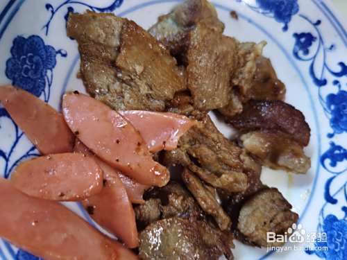 配菜在肉边上一同放上去,稍微煎一下,美味。