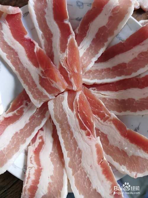 准备一块肥瘦相间的五花肉,切成薄薄的长片,我直接买的进口五花肉片,省事又好吃。