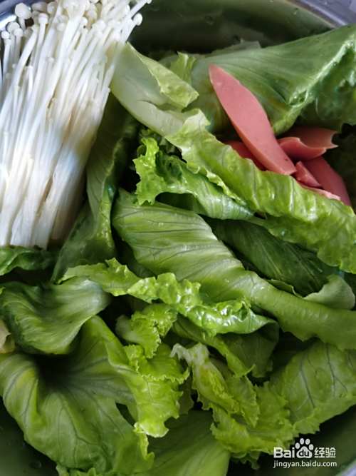 准备配菜,生菜,火腿肠,金针菇,看个人喜好准备。