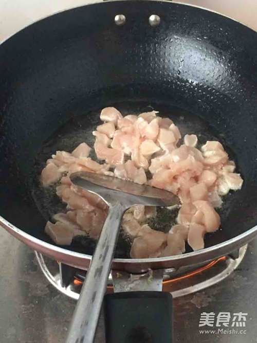 热锅放油烧热,放鸡胸肉