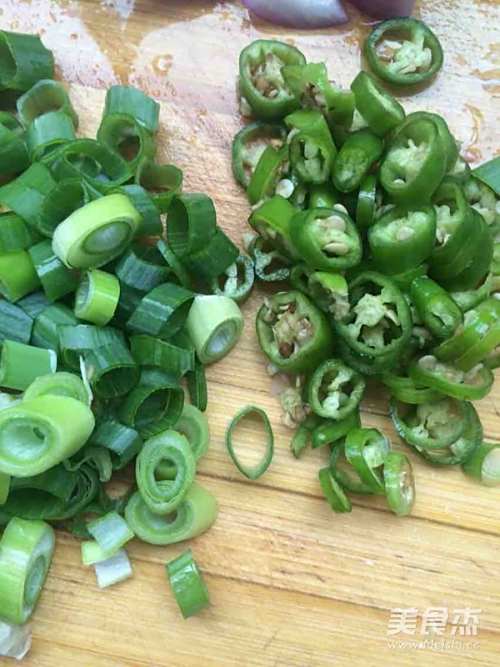 辣椒切圈状,切葱花
