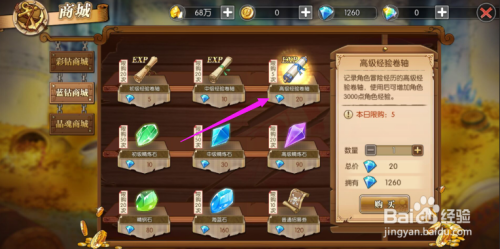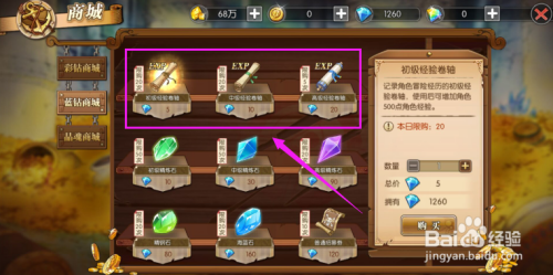 【蓝钻商城】这里,经验劵一共有3种(低级、中级、高级经验劵),,如图。