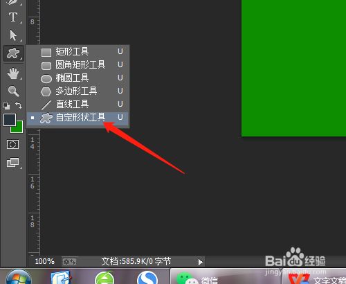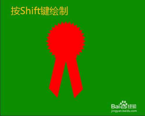 新建背景色文档,用自定形状选丝带,改前景色为红色,按Shift键绘制出红色丝带。