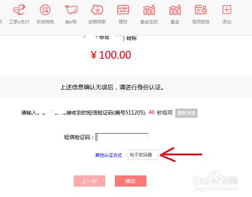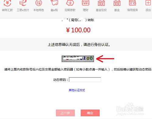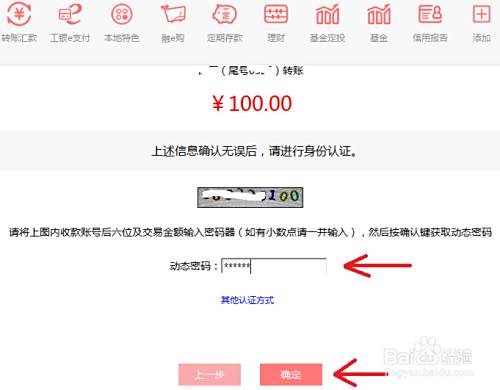 把安全认证工具屏幕上的动态密码,输入转账页面的对应框内,按“确定”就可以了。
