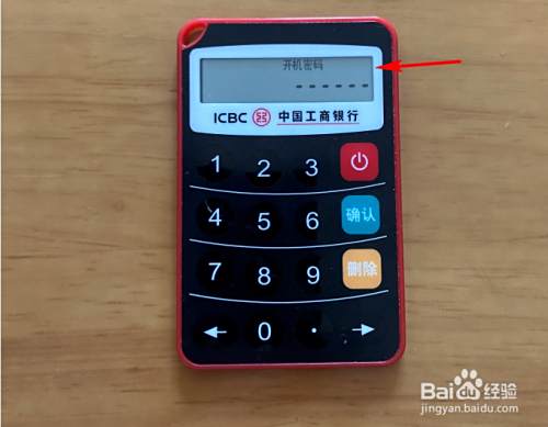 长按安全认证工具上的的红色开机按钮,当屏幕出现“开机密码”时,输入开机密码。