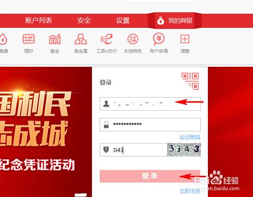 按顺序,在框内依次输入:卡号,登录密码,验证码,点击“登录”。