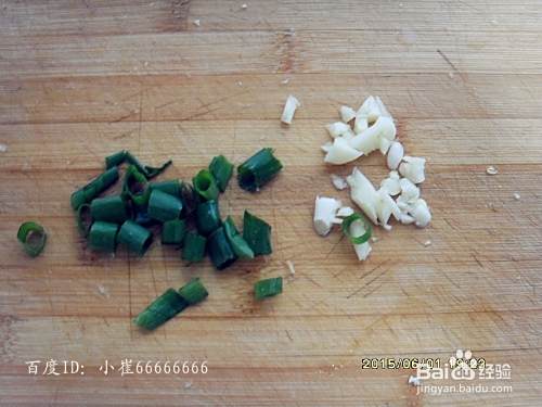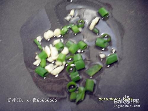 炒锅里烧点热玉米油,把葱花和蒜末先放进去煸香。