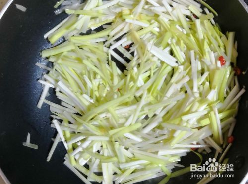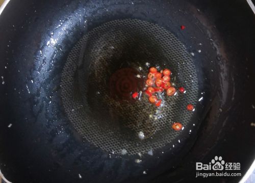 锅中再放少许油,油热后放入小米椒煸炒一下。