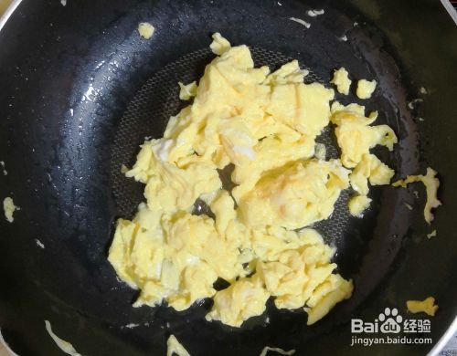 锅中放少许油,油热后放入鸡蛋液,炒到7成熟盛出。