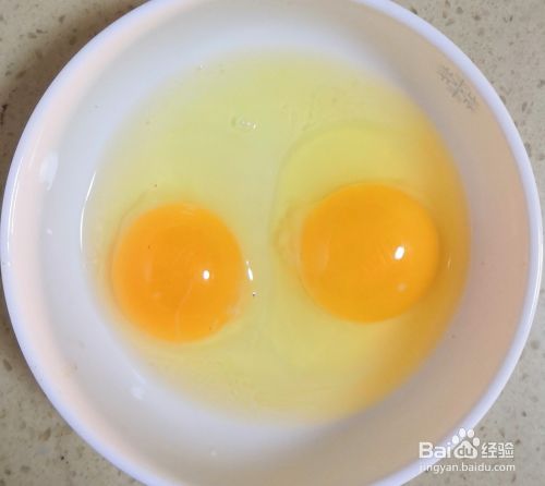 准备鸡蛋两个,打到碗里用筷子搅匀。