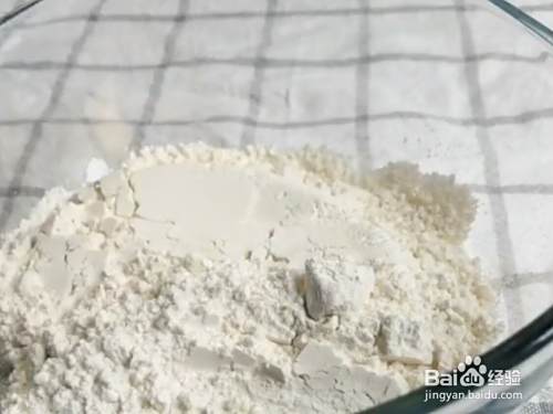 碗里准备地精面粉,加适量糖盒一小撮盐。