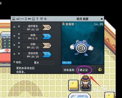 给 蚊香蛙 ,携带 王者之证 后,找朋友 通信 进化 即可顺利地进化为牛蛙君...