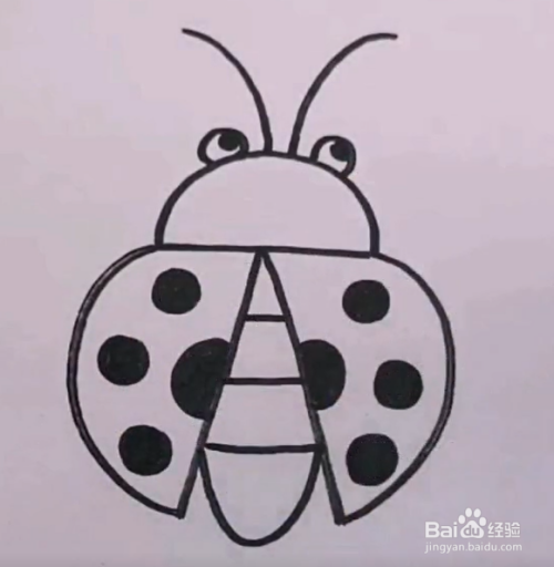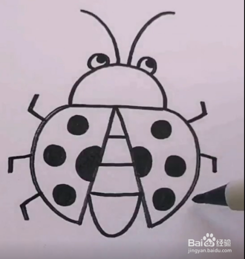 最后在大括号外面分别画出七星瓢虫的脚,这样一个七星瓢虫就画好啦。