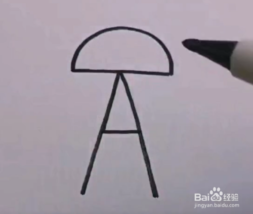 在A的左右两侧画一个大括号,大括号首尾与半圆和A相连。