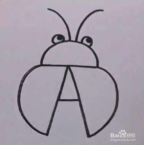 在半圆的上方画七星瓢虫的眼睛和触须。