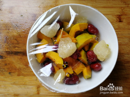 盖上保鲜膜,用牙签扎上小洞。其实不盖也可以。