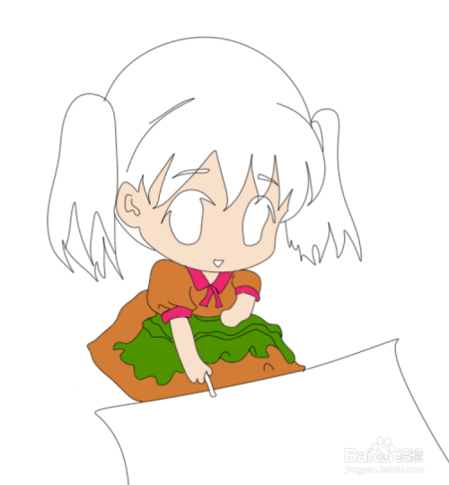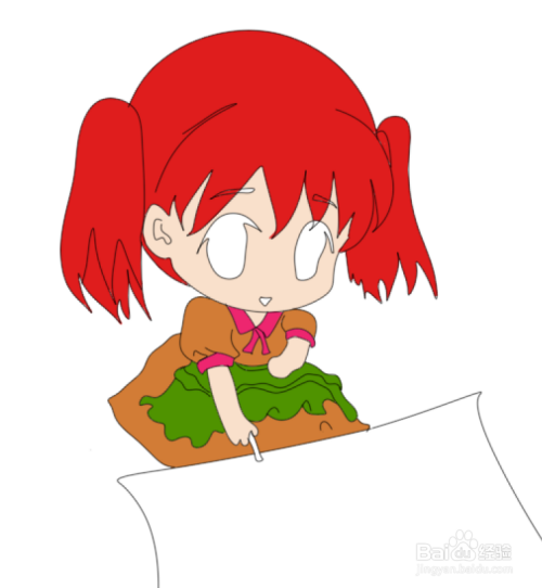 给人物的衣服涂上棕色,衣服的边幅用红色涂上;如图所示。
