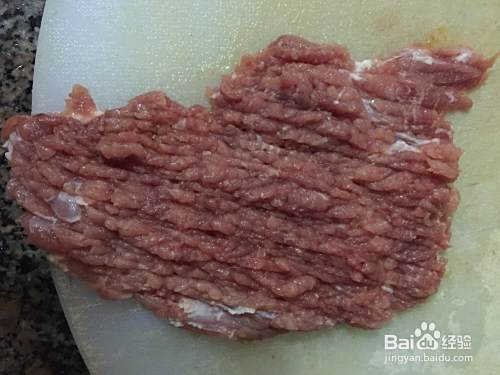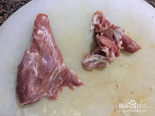 取一小块瘦肉,清洗干净,切成小块;要全瘦的,尽量不要肥的,有肥的就切掉;