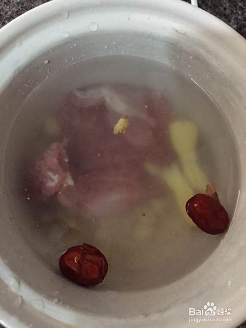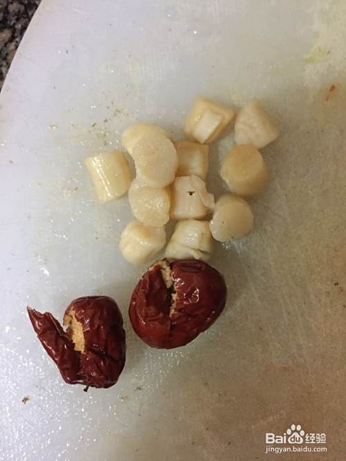 将姜洗净切片,将干贝和红枣稍微清洗一下;