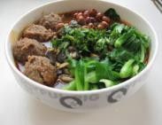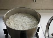 5.粉先用开水焯一下,牛肉丸子也事先煮好