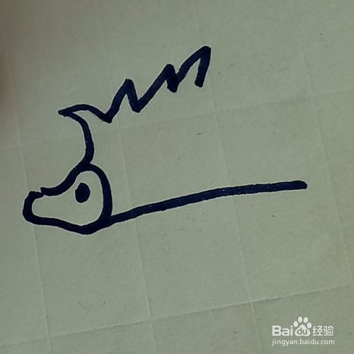 我们在头的上面画一个尖尖的刺向左侧弯,然后再画均匀的小一点刺