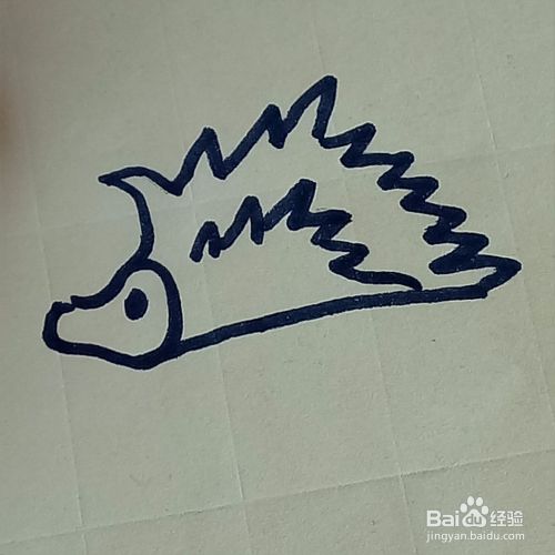 我们先在纸上画出小刺猬的头,像一个三角形,嘴巴的地方画出弧度,并在里面画上一个小眼睛