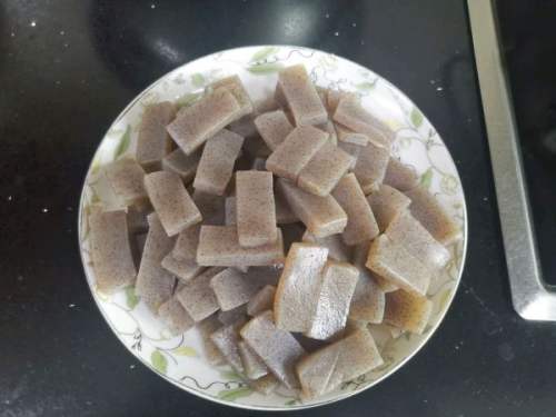 3磨芋切块焯水备用。