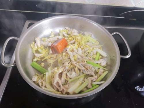 6用姜葱蒜炝锅。
