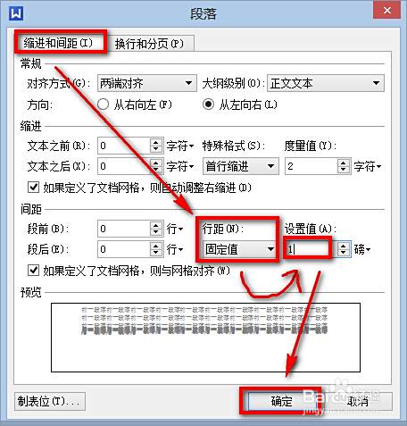 在段落窗口中缩进和间距——行距(设为固定值)