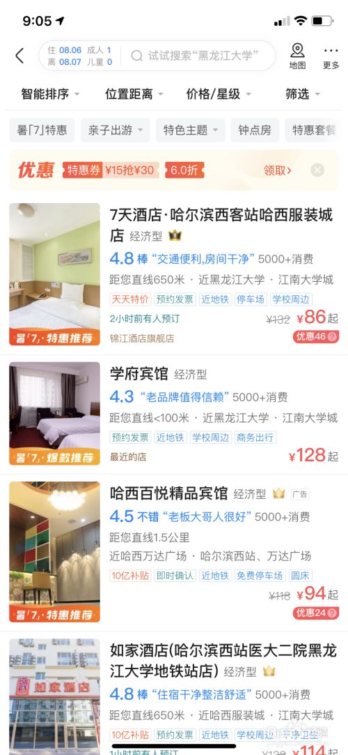 3.然后系统会根据你的信息,给你推荐周边的酒店,你可以选择合适的进行预订