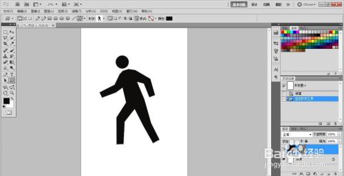 在PS软件中,可以新建一张A4白色纸张,通过界面自定形状工具,选择形状中的行人,在白纸中画出行人来实现。