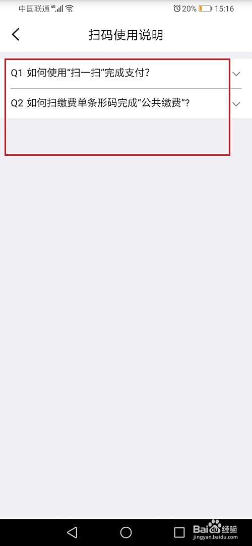 第五步点击使用说明,可以看到云闪付扫描二维码的说明,根据需要查看,如下图所示: