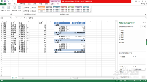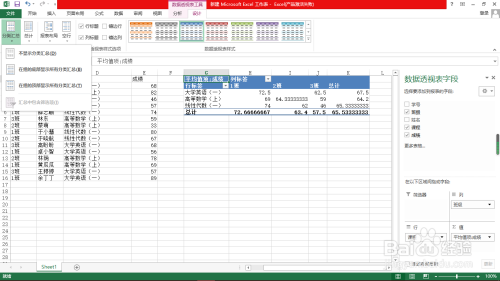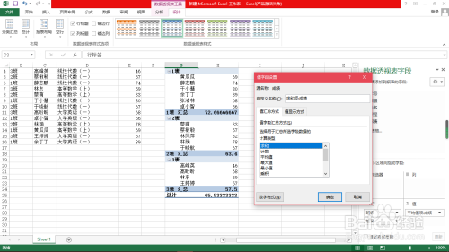 还是显示分类汇总数据比较清楚,我们习惯求和,把【值】——【平均值项:成绩】设置成【求和】。