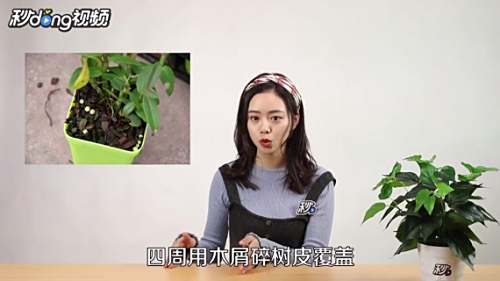 1首先,选择一个大小合适的花盆,把植株种入盆中,四周用木屑碎树皮覆盖,注意不要覆盖太深,到根茎部位就可以